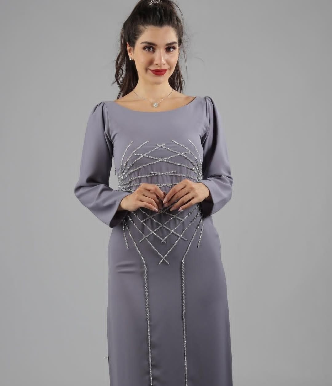 Silver Mist Abaya is designed in a soft grey tone, beautifully enhanced with intricate silver embellishment that creates a graceful and refined look. The detailed beadwork on the front adds depth and sophistication, while the smooth, flowy fabric ensures comfort and effortless elegance. Ideal for formal occasions, evening events, and special gatherings, this abaya offers a perfect balance of modern style and timeless charm.